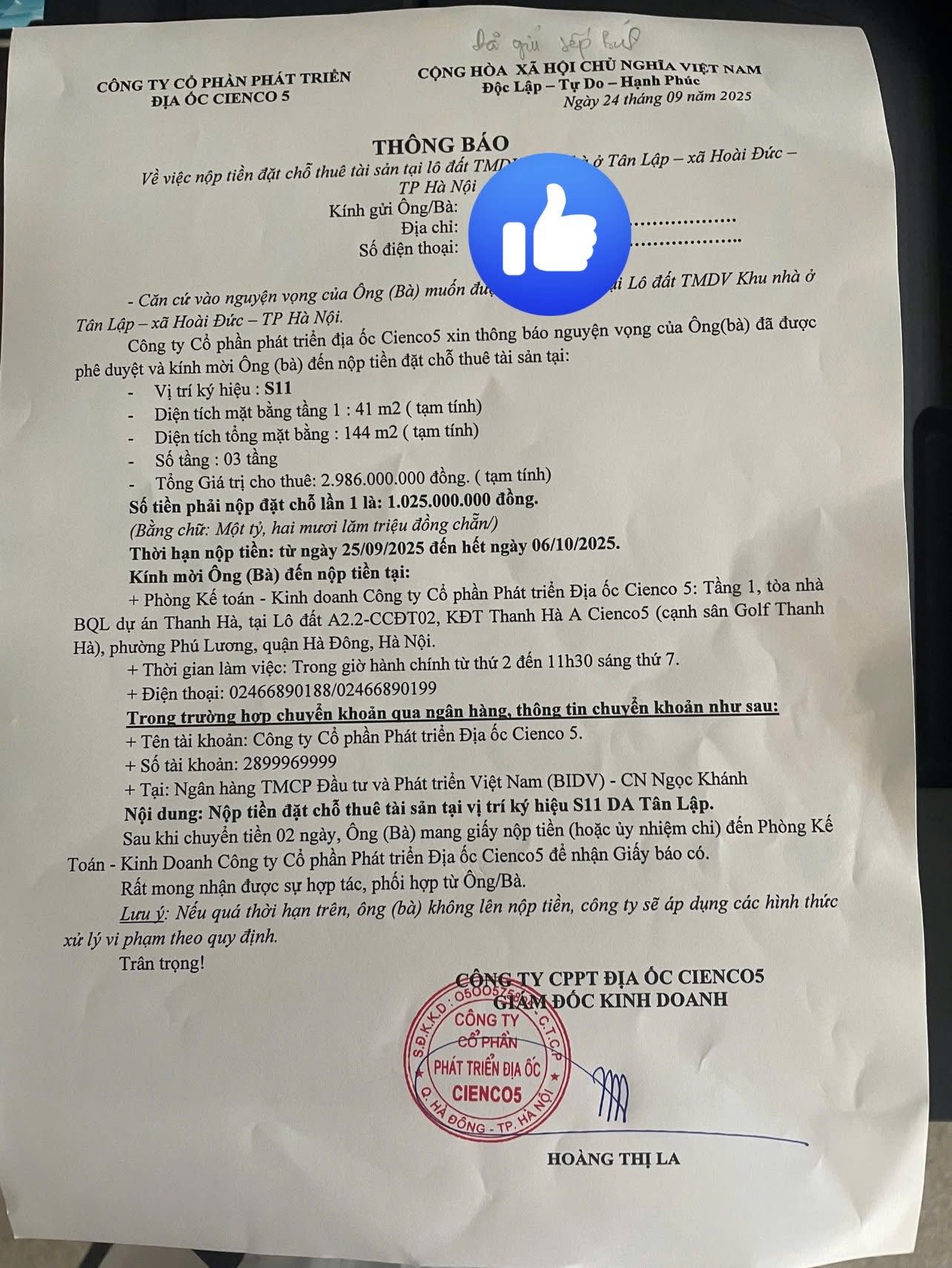 - Công ty cổ phần địa ốc cienco 5 ( tập đoàn Mường Thanh) vừa mở bán 1 số lô đất thương mại dịch vụ liền kề, shophouse. Giá có nhà liền kề/shophouse 71 m² rao ~12.5 tỷ VND (tuỳ căn, mặt tiền, pháp lý).